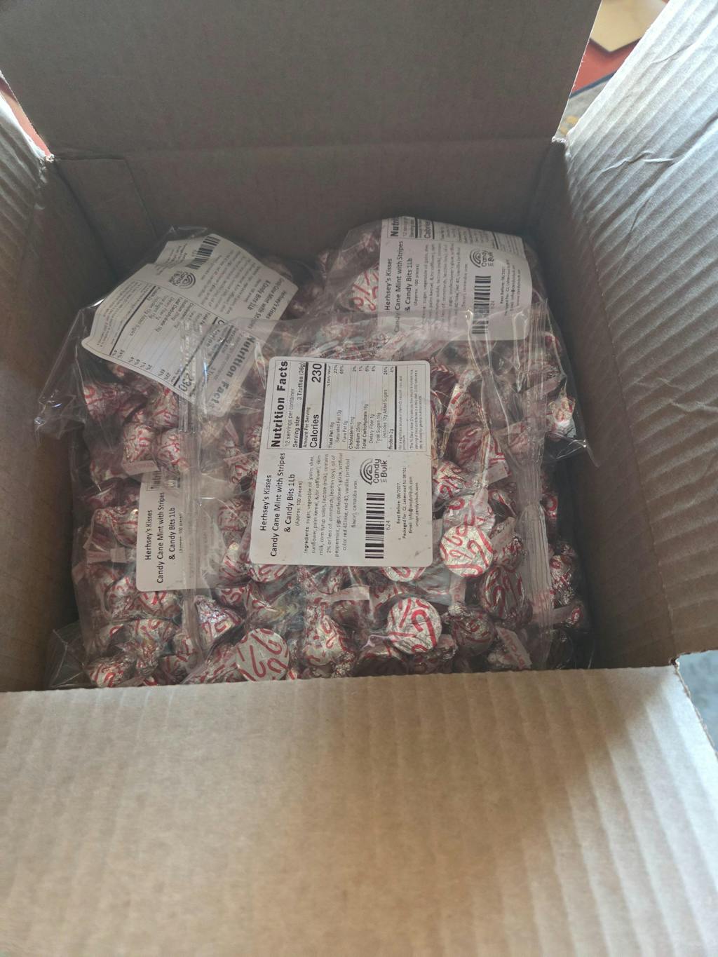 Hershey’s Kisses Candy Cane Mint Candy with Stripes & Candy Bits – Bulk Value Bag – 1 lb